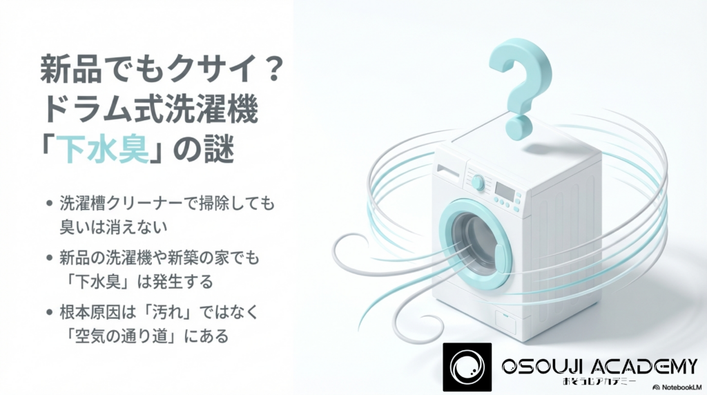 「洗濯機が汚れているから臭う」と思われがちですが、ドラム式洗濯機の場合は「空気の通り道」であるケースがほとんどです。