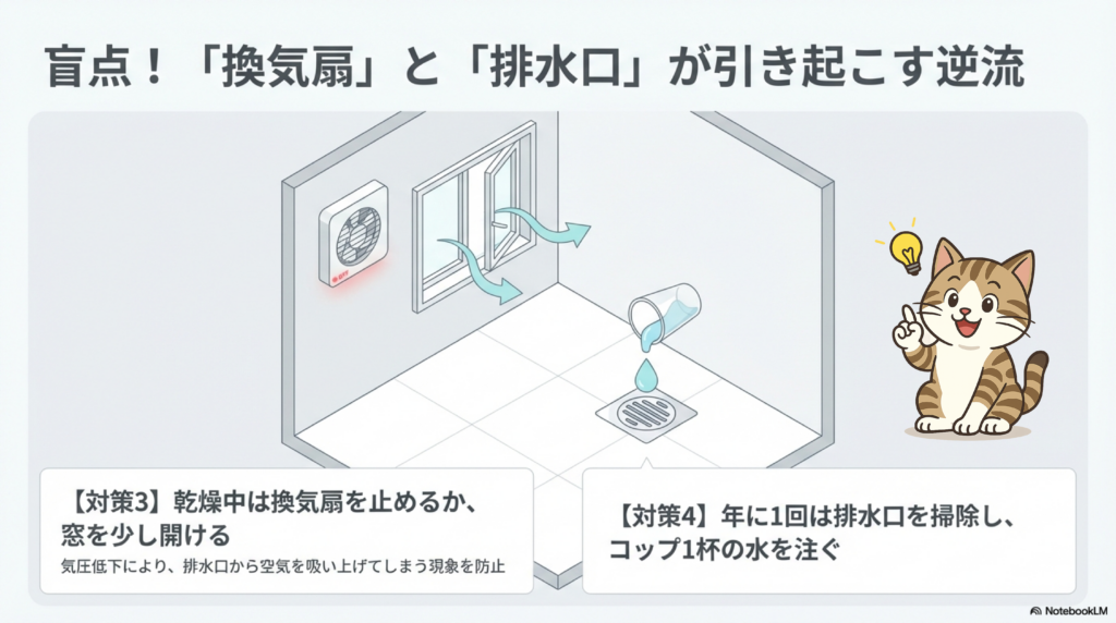 対策3. 【新常識】乾燥中は「換気扇」を止めてみる