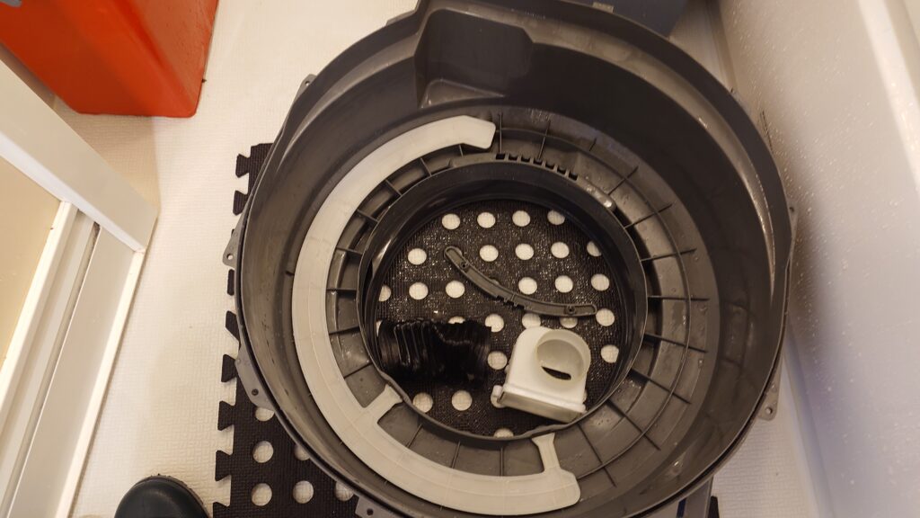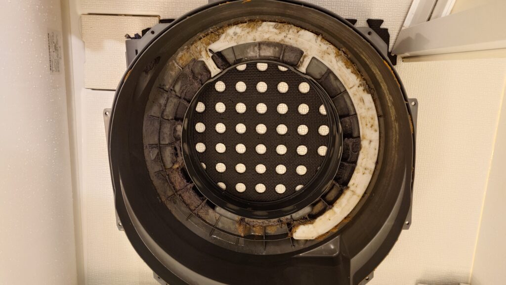 フタがなくなれば、下の水の臭いは遮られるものがありません。乾燥機が回れば回るほど、洗濯機が「下の水の空気を吸い込むポンプ」のようになってしまい、部屋中に臭いが広がってしまうのです