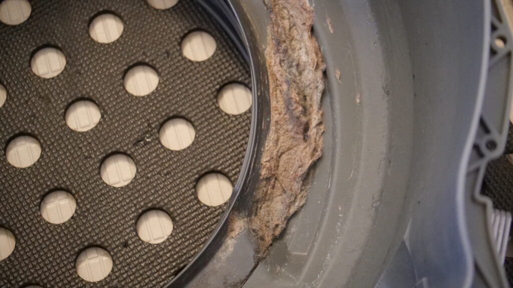 脱水受けカバー内に溜まったホコリ汚れ(VXシリーズ)